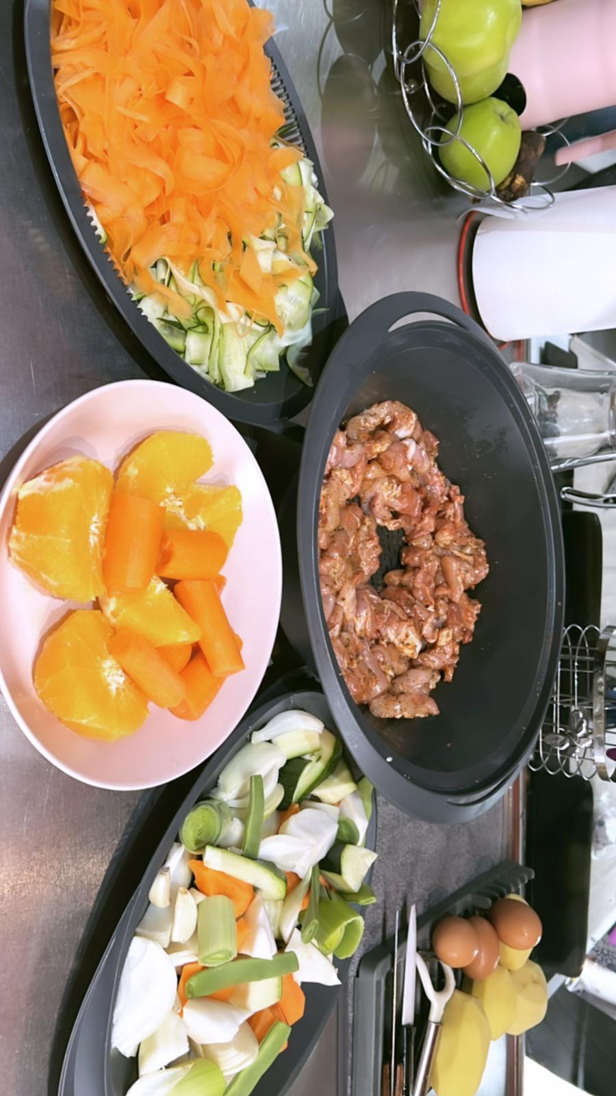 Te gustaria cocinar conmigo este menú completo ,en 25 minutos sin tener que manchar tu cocina,con unos ingredientes del dia a dia.cocinado todo al vapor