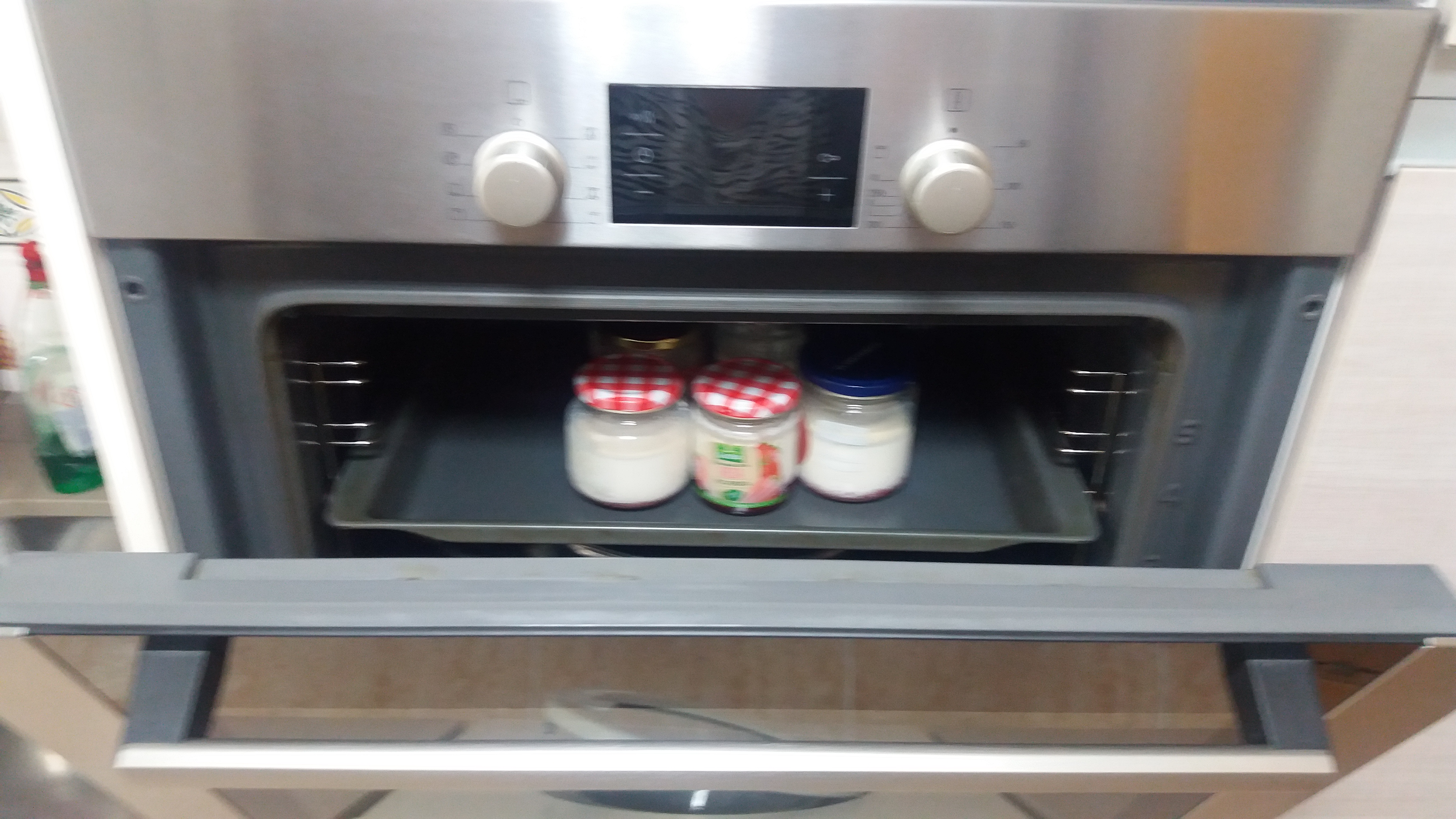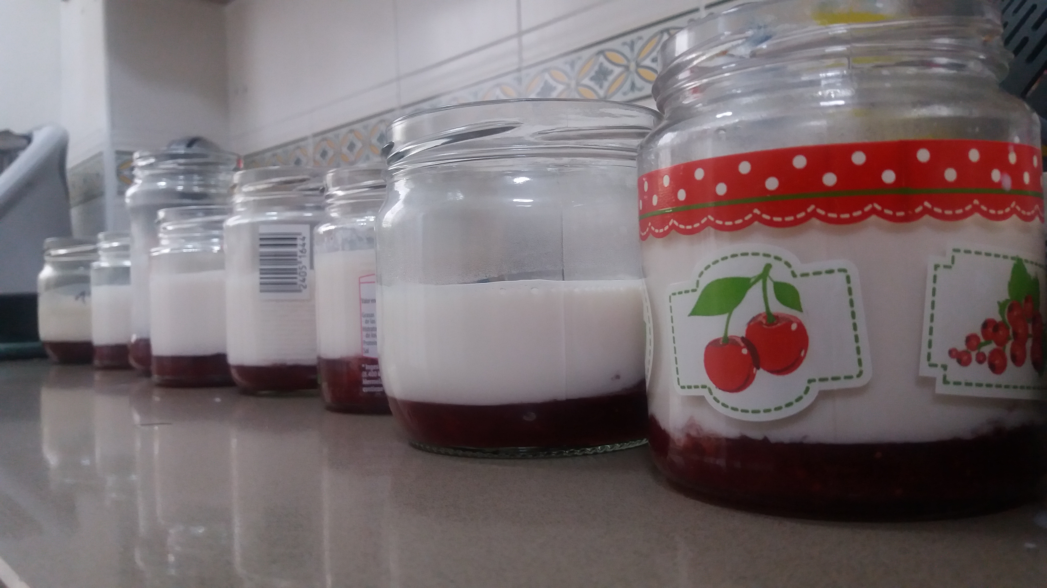 REPARTIMOS en los tarros, tapamos con pañls de cocina o metemos en el horno y dejamos fermentar minimo 12 HORAS. No se deben mover bajo en nigun concepto.