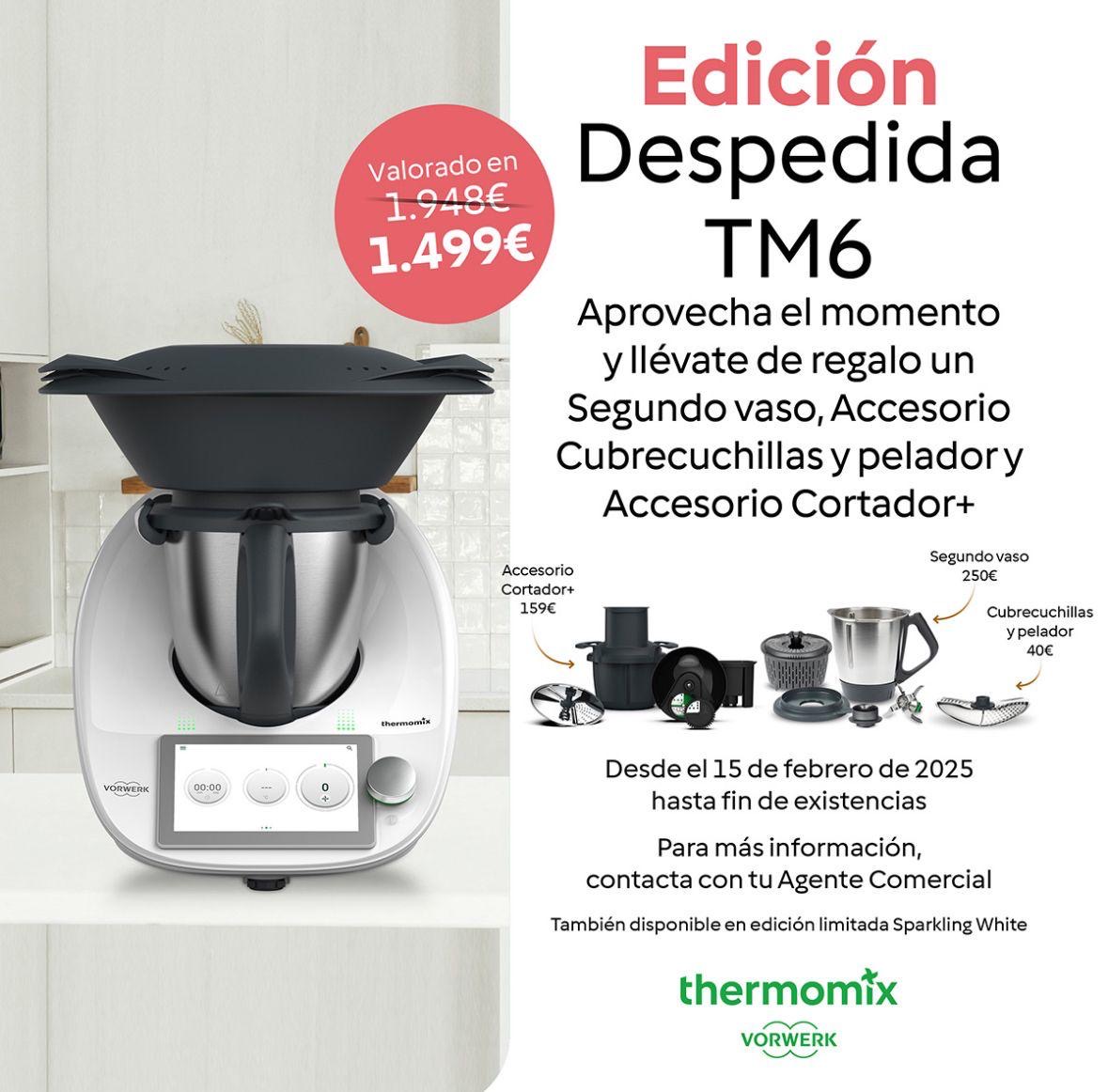 De Thermomix® TM6 con un precio de 1499 y financiado sin intereses con regalos valorados en 400 € y entrega inmediata.