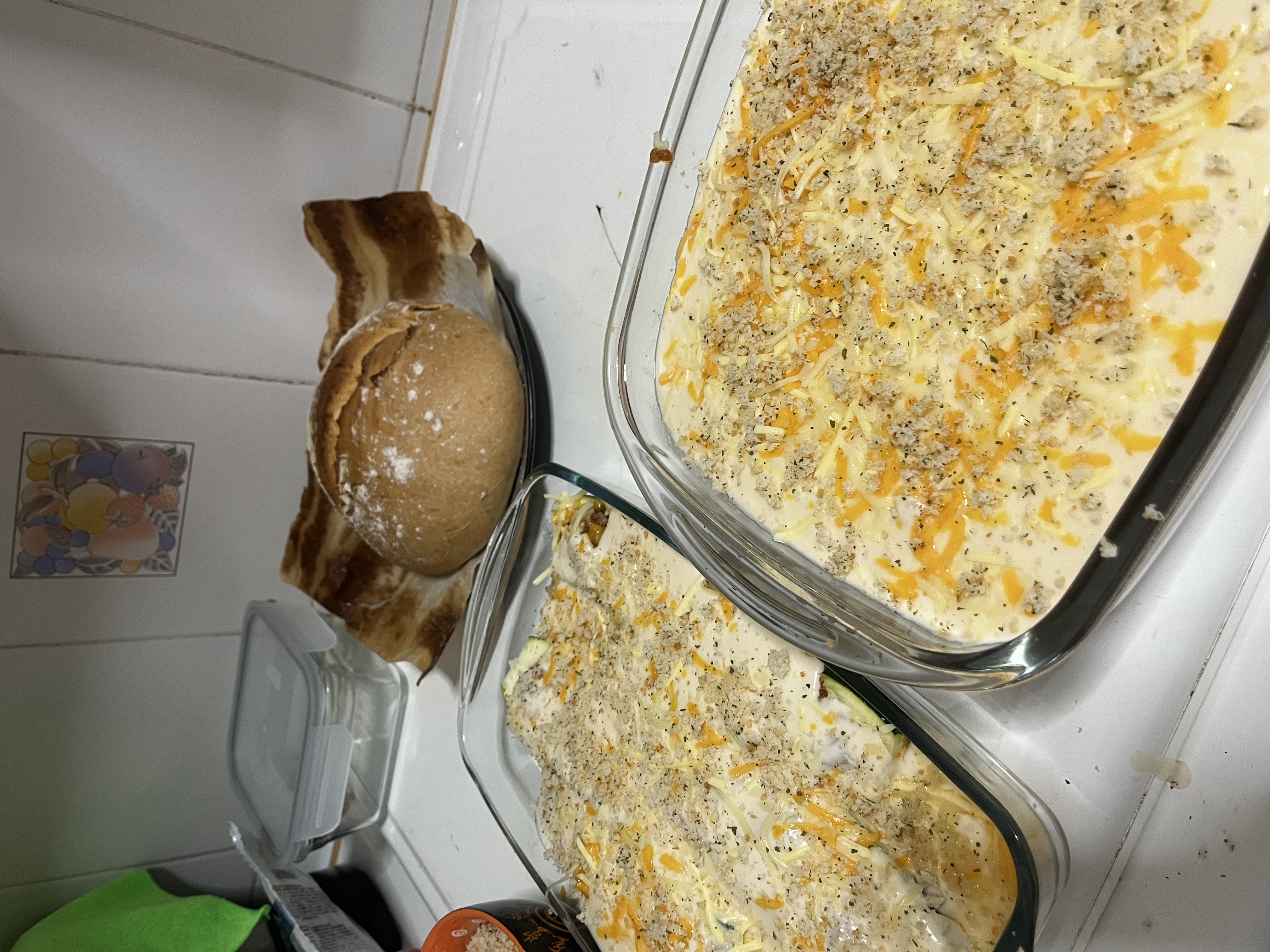 Y OTRO TRUCO: cuando pongas la bechamel por encima y ya estés apunto de meterla en el horno tienes que poner pan rallado junto con el queso y será un acabado magnífico y crujiente al final tras hornearlo.