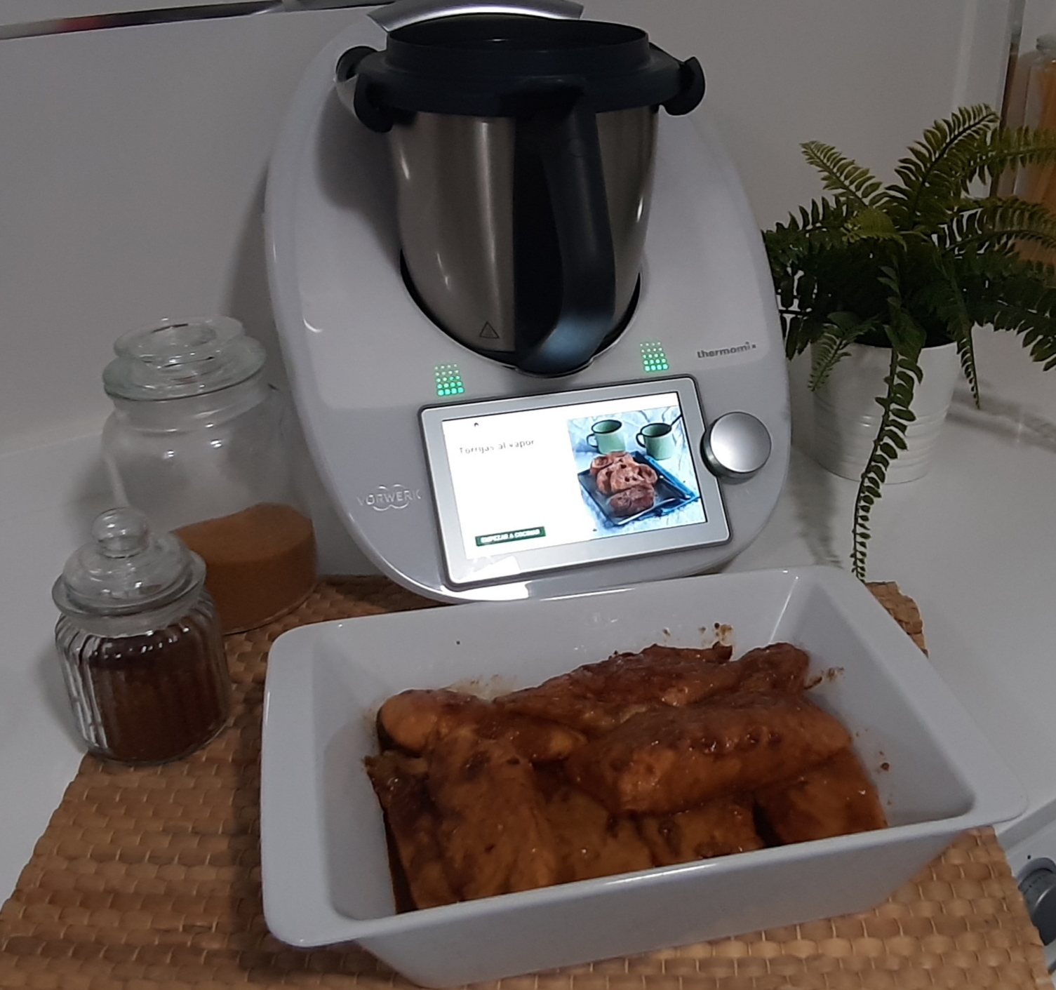 Añadimos el agua en el vaso y situamos el recipiente Varoma en su posición programamos 25 min/varoma/vel 1.
