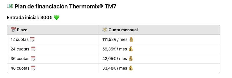 ¿Se puede financiar el Thermomix? cómo pagar el Thermomix a plazos. cuotas Thermomix TM7. precio Thermomix financiado. plan de financiación Thermomix TM7. cuánto cuesta Thermomix al mes. cuánto se paga por Thermomix financiado.financiación Thermomix con entrada. comprar Thermomix sin pagar todo de golpe.