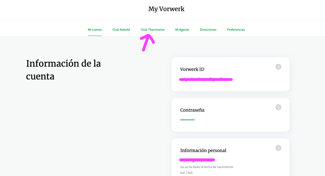 Inicia sesión y entra en tu cuenta de My Vorwerk. Pincha en “Club Thermomix® Lovers” :