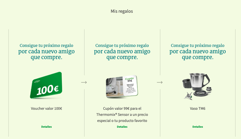 ? Después de los 90 días, cada vez que un amigo compre su Thermomix® TM6, recibirás un voucher (cupón) de 100€ de descuento en la tienda online de Thermomix®. ¡De forma ilimitada!