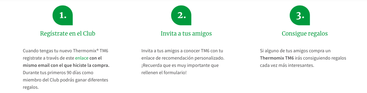 Si eres cliente de Thermomix® TM6® (que lo hayas comprado en Thermomix, no de segunda mano o a un vecino), te damos acceso a un club exclusivo donde cada recomendación cuenta y donde puedes recibir regalos increíbles e incluso recuperar más de lo que invertiste en tu Thermomix® Tm6®.