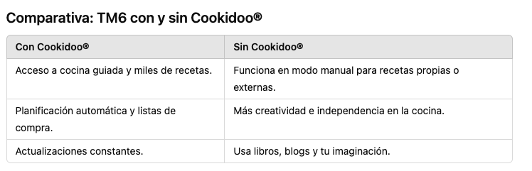 La clave está en elegir lo que mejor se adapte a tu estilo de vida: con conexión y automatización o con más creatividad e independencia. ? ¡Sea cual sea tu opción, tu TM6 está listo para acompañarte en cada receta!