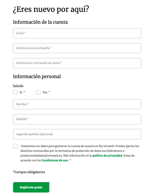 ? Introduce tus datos personales tal como los facilitaste en tu compra de Thermomix® TM6.