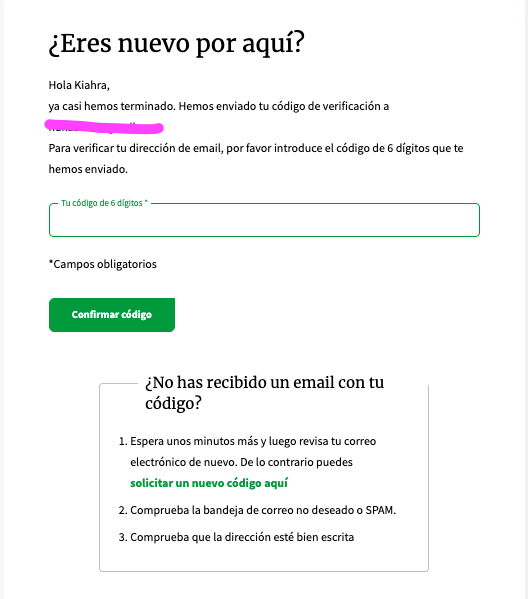 Una vez que hayas completado el formulario, recibirás un código de verificación en el correo electrónico que registraste.