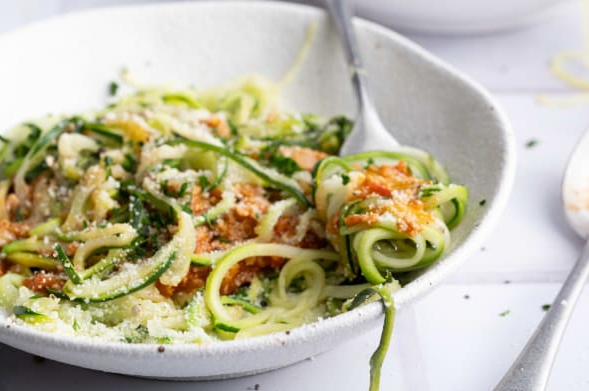 Te dejo una receta, que sin duda, ¡es espectacular! Espirales de calabacín con boloñesa.