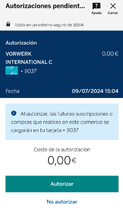 Te va a pedir que valides la operación en tu banco y como ves, no carga nada, sale a coste 0€ (si la tienes caducada, o no la tenías, pues tendrás el coste de 48€ o 36€ ,si tienes la suscripción 2.0).