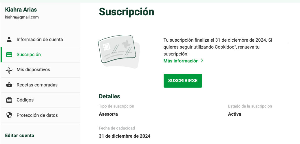 Suscripción de Cookidoo® ACTIVA. Cambio de precio suscripción Cookidoo®. Renovación Cookidoo®. ¿Cómo saber si mi suscripción de Cookidoo está bien?