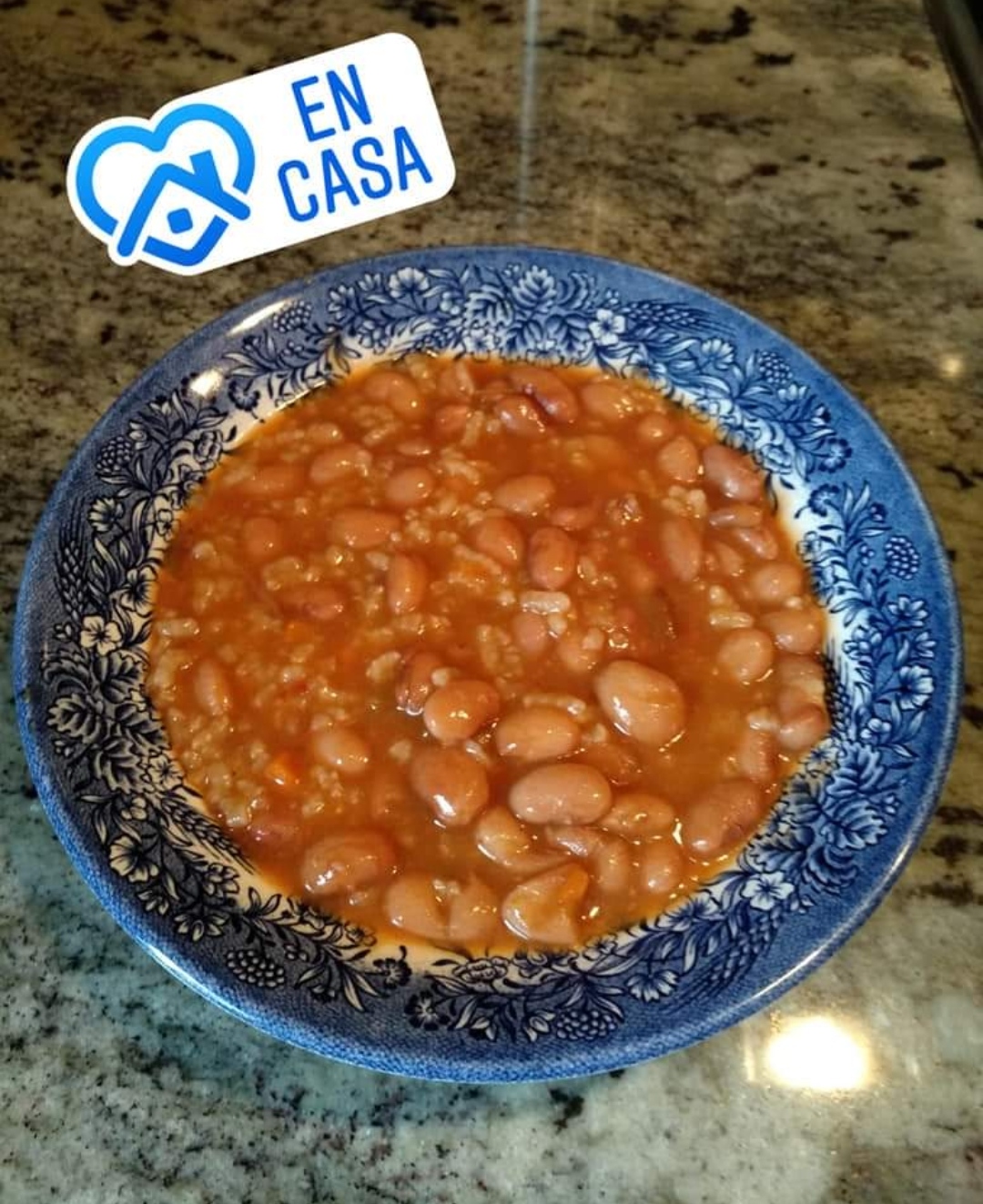 Judías pintas estofadas con arroz y verduras.