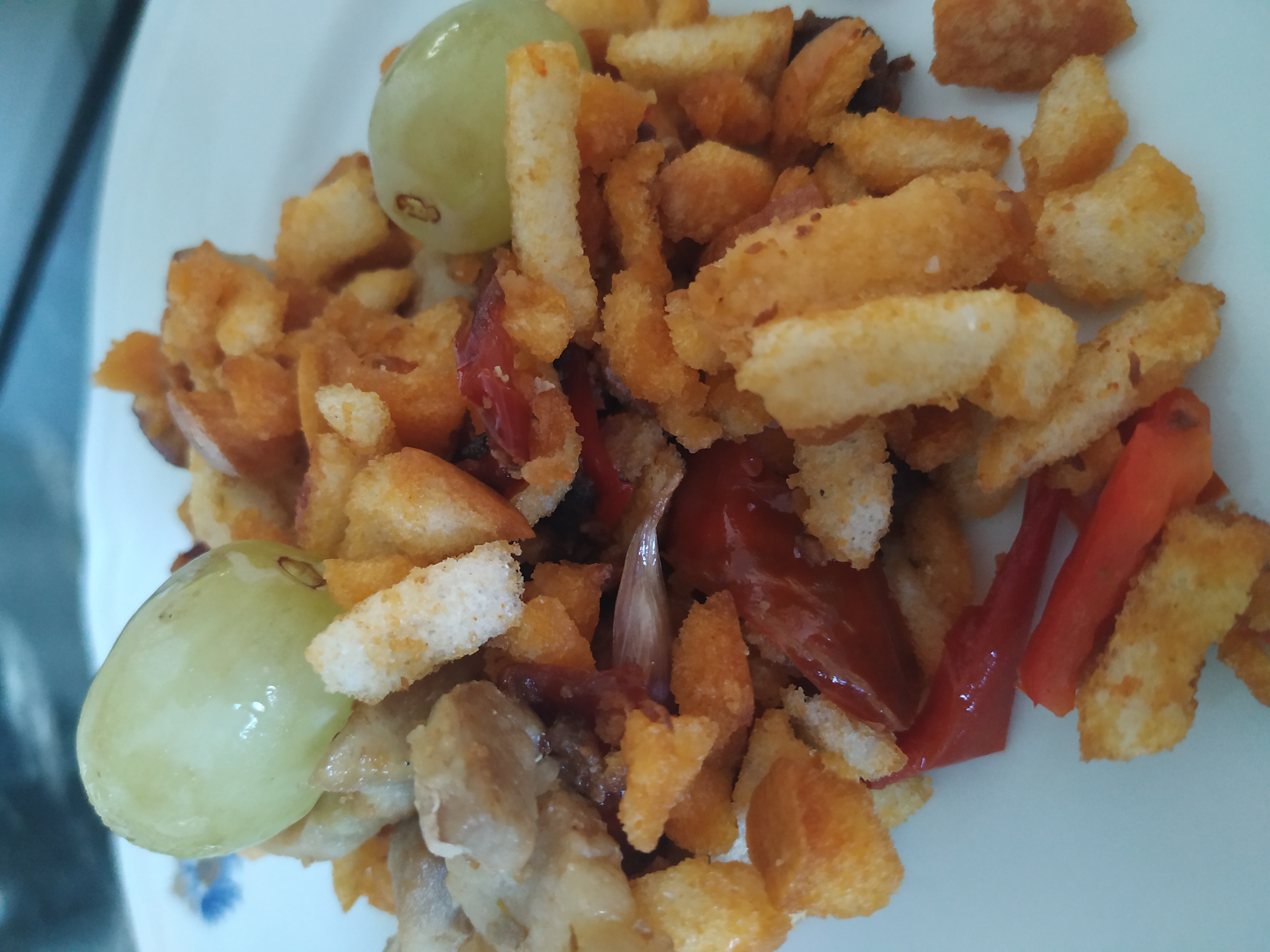 Migas con chorizo y uvas